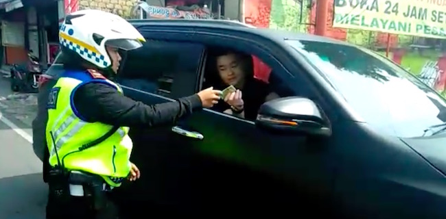 Mengejutkan, saat diberhentikan pengemudi ternyata bukan anggota Polri melainkan seorang mahasiswa berumur 24 tahun.