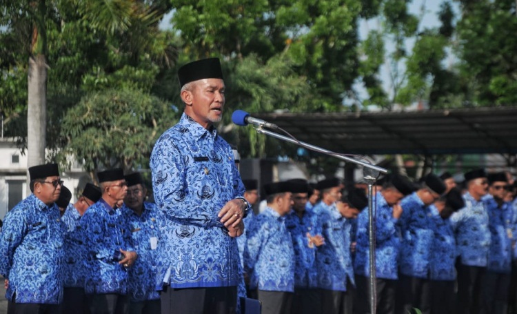 Dalam Apel itu Wabup berpesan kepada seluruh pegawai untuk meningkatkan kerjasama, disiplin dan ikhlas bekerja sebagai bahan evaluasi pemberian Reward dan Punishmen kepada pegawai bersangkutan, betempat dihalaman Kantor Bupati, Senin (17/6/2019).