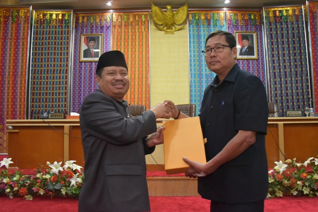 Pada kesempatan itu Bupati menyampaikan tentang pengelolaan keuangan daerah tahun 2018, dimana realisasi Pendapatan Asli Daerah (PAD) Rp319.252.150.430,11 atau atau 71,82% target Rp444.510.450.102,00,
