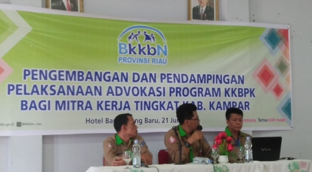 Demikian disampaikan Kepala Perwakilan BKKBN Provinsi Riau Drs Agus P Proklamasi, MM pada acara Pengembangan dan Pendampingan Pelaksanaan Advokasi Program KKBPK (Kependudukan Keluarga Berencana dan Pembangunan Keluarga) bagi mitra kerja pemerintah tingkat Kabupaten Kampar di Hotel Bangkinang Baru, Jumat (21/6/19).