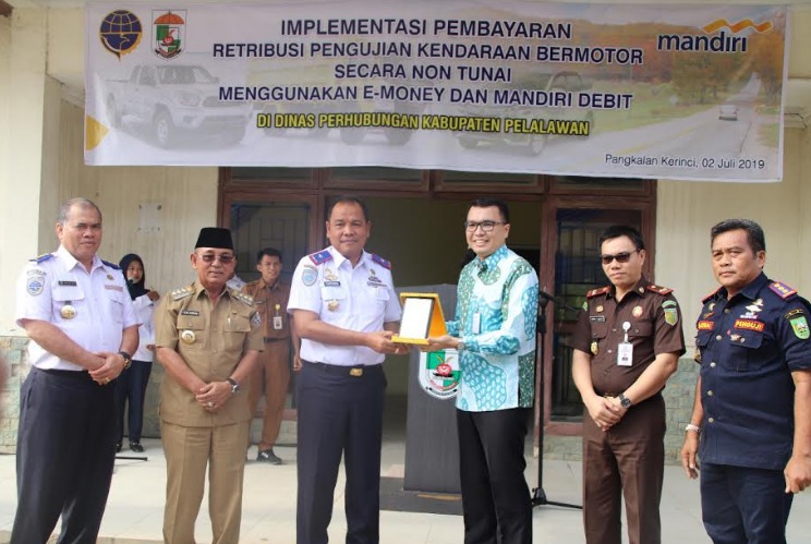 Dikatakan Kepala Cabang PT.Bank Mandiri Pangkalan Kerinci. Alwi Reza Nasution saat launching Implementasi Pembayaran Retribusi Pengujian Kendaraan Bermotor Secara Non Tunai Menggunakan E-Money dan Mandiri Debet di Kantor Dinas Perhubungan Pangkalan Kerinci, Selasa (2/7/2019) malam, kerjasama tersebut adalah salah satu trobosan yang di lakukan oleh Dinas Perhubungan, dan layanan ini pertama kalinya di Provinsi Riau dengan cara bertransaksi secara non tunai bagi masyarakat pemegang debet card atau e-money dengan menggandeng bank swasta setempat yakni Bank Mandiri.