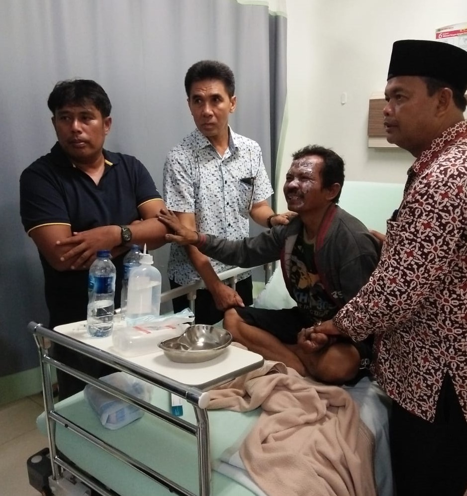 Ujang Asrizal, suami korban yang meninggal, saat dirawat RS Awal Bros Panam, Sabtu malam.