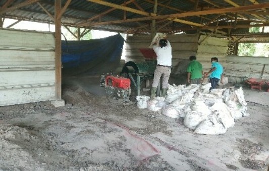 "Dalam pengelolaan pupuk, sehari bahan baku yang kita butuhkan mencapai 4 ton. Untuk penjualannya juga kita memakai pertukaran barang tergantung kebutuhan petani perkebunan selain perusahaan. Selain itu, perusahaan juga banyak membantu bahan pengelolaan berupa rumput, arang dan fiber sawit," ujarnya.