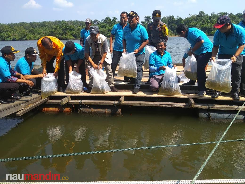 RIAUMANDIRI.CO, KUOK - Lembaga Food and Agriculture Organization (FAO) Indonesia bekerja sama dengan Balai Riset Perikanan Perairan Umum dan Penyuluhan Perikanan (BRPPUPP) dari Kementrian Kelautan dan Perikanan (KKP) menggelar kegiatan aksi bersih sungai dan penebaran (restocking) 85 ribu bibit ikan jelawat di Desa Pulau Terap, Kecamatan Kuok, Kabupaten Kampar, Sabtu (27/7/2019).