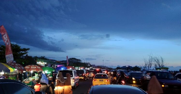 Arus kendaraan dan mobil meluncur dari Telukbetung ke arah Kantor Wali Kota Bandar Lampung, Masjid Agung Al-Furqon, dan juga Kantor Gubernur Lampung. Tampak suasana ramai dan macet, serta diiringi bunyi klakson mobil dan motor menuju tempat yang tinggi.