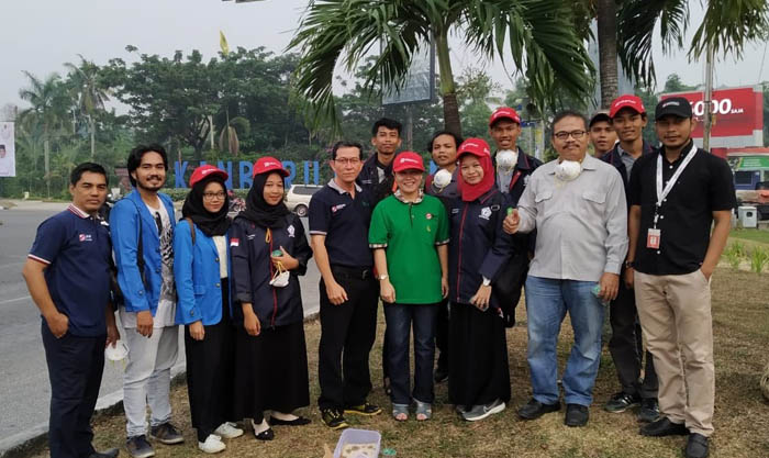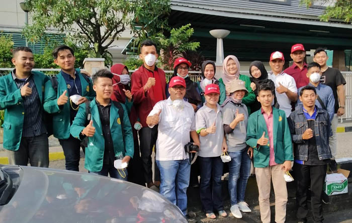 Pengurus BEM Umri foto bersama karyawan Sinar Mas Group usai membagikan masker.