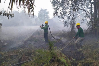 "Kita lebih banyak mem-backup dan membantu pemadaman di luar konsesi kita dan mitra, ada beberapa tempat. Ada empat tempat, di Teluk Meranti (Pelalawan), Junjangan (Inhil), Serapung (Pelalawan) dan Desa Merbau, Bunut Pelalawan. Sampai saat ini masih berlangsung bantuan pemadaman oleh tim kita, yang kita turunkan 7 regu (68 orang) di empat firespot tersebut. Rata-rata lokasi firespot tersebut daerah terbuka dan ada yang berdekatan dengan laut, salah satu tantangan tim kita adalah hembusan angin," ungkap Deny Wijaya.