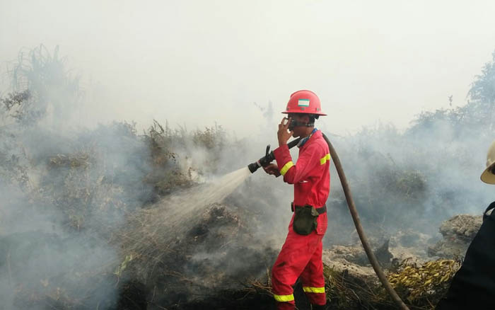 "Ketika kita ploting di peta berjarak sekitar 6 s/d 7 km dari pinggiran konsesi perusahaan kita. Kita melalui pimpinan kita juga telah melaporkannya kepada pihak terkait, baik pemerintah desa maupun melalui Satgas Riau. Kita diminta oleh aparat setempat untuk membantu memadamkannya, sampai saat ini sudah hari ke tiga kita turunkan tim RPK kita sebanyak 2 regu (14 orang) dan 1 Regu TRC (7 orang) ditambah dari MPA (Masyarakat Peduli Api) yang bina dan dilatih perusahaan selama ini. Kemudian, security perusahaan kita yang juga bekerjasama dengan tim TNI/Polri," terang Jhon.