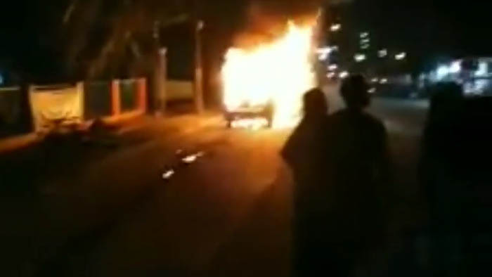 Namun pada saat kendaraan baru berjalan sekitar 20 meter, masyarakat sekitar berteriak bahwa di mobil mereka ada api. Kemudian spontan keduanya langsung keluar kendaraan, sementara api terus membesar.