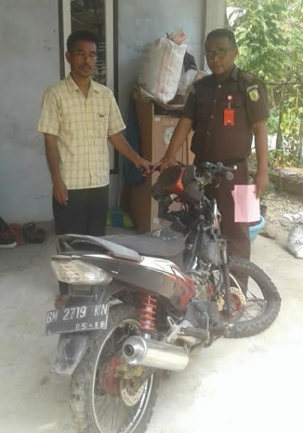 Pada Senin (9/9/2019) Kejaksaan Negeri Kuansing mengantarkan barang bukti kepada Hendra yang merupakan salah satu warga Desa Tanjung Pauh, Kecamatan Singingi Hilir.