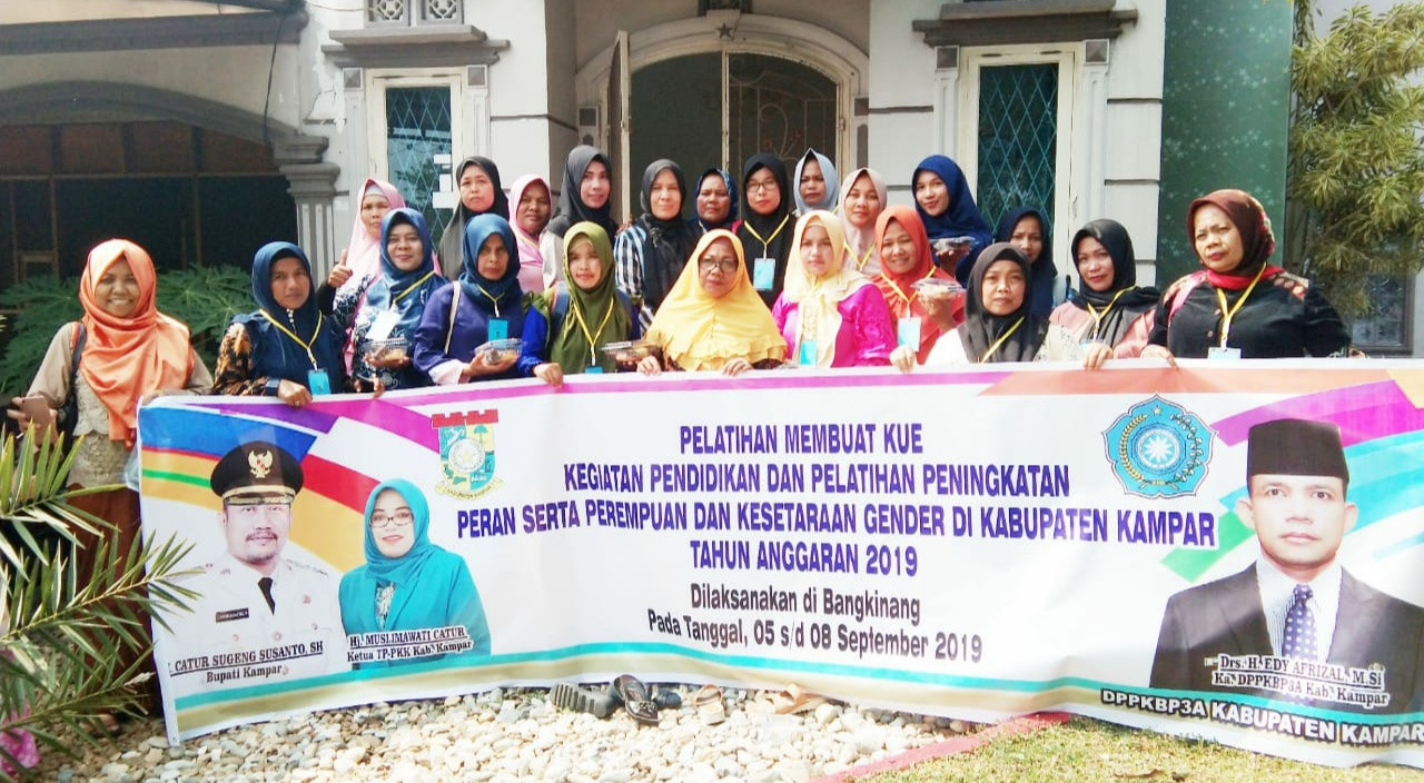 RIAUMANDIRI.CO, BANGKINANG - Dinas Pengendalian Penduduk, Keluarga Berencana, Pemberdayaan Perempuan dan Perlindungan Anak (DPPKBP3A) Kabupaten Kampar menggelar kegiatan pelatihan keterampilan Perempuan Kepala Rumah Tangga (Peka) dalam bentuk pelatihan membuat aneka kue. Kegiatan ini digelar selama tiga hari, 5-8 September 2019.