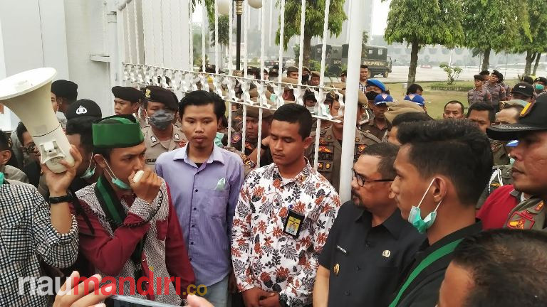 RIAUMANDIRI.CO, PEKANBARU - Wakil Gubernur Riau Edy Natar Nasution akhirnya menemui massa HMI MPO yang demo di depan Kantor Gubernur Riau menuntut pemerimtah menuntaskan kebakaran hutan dan lahan, Kamis (12/9/2019).