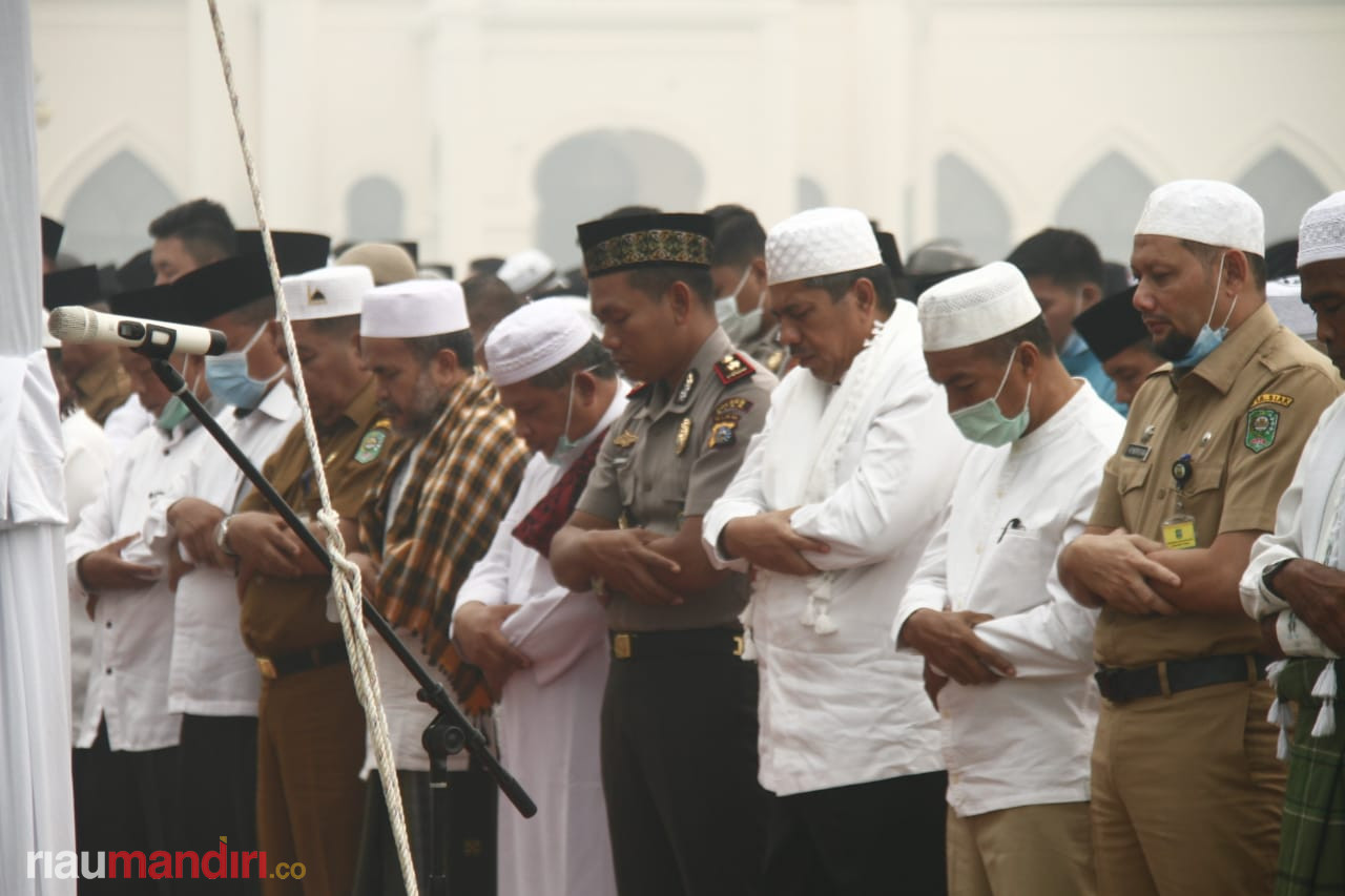RIAUMANDIRI.CO, SIAK - Pemerintah Kabupaten Siak kembali melaksanakan Salat Istisqa di Lapangan Tugu depan Istana Siak, Selasa pagi (17/9/2019).