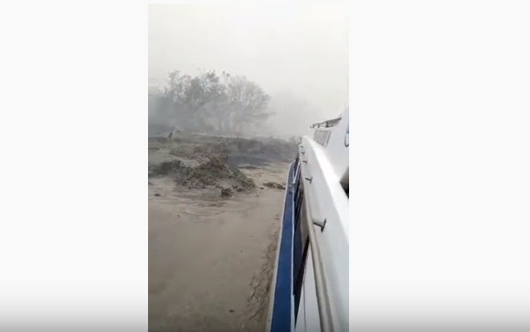 "Diduga penglihatan kapten kapal terhalang oleh kabut asap, saat ia memacu kecepatan secara tak sengaja menabrak bibir pantai dan terjebak sampai ke daratan," terang Abu Said.