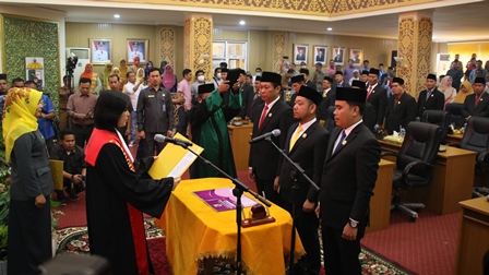 "Sumpah dan janji yang saudara ucapakan bukan hanya kepada manusia, tetapi kepada Tuhan Yang Maha Esa. Karena Tuhan tahu apa yang ada di dalam diri saudara," kata Wakil Ketua PN Pelalawan, Meilinda Aritonang, SH, MH saat memandu pengucapan sumpah pimpinan dewan.