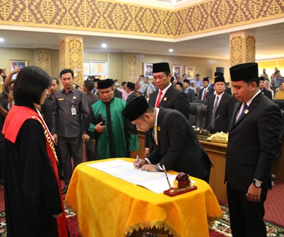 Pengambilan sumpah jabatan Ketua DPRD dan Wakil Ketua DPRD ini dipimpin langsung oleh Wakil Ketua Pengadilan Negeri (PN) Pelalawan Meilinda Aritonang, SH, MH.