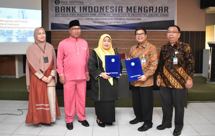 RIAUMANDIRI.CO, PEKANBARU - Untuk meningkatkan kualitas perguruan tinggi di bidang pendidikan, Universitas Lancang Kuning dan Kantor Bank Indonesia Perwakilan Provinsi Riau, melakukan penandatanganan nota kesepahaman atau Memorandum of Understanding (MoU), Jumat (27/9/2019).