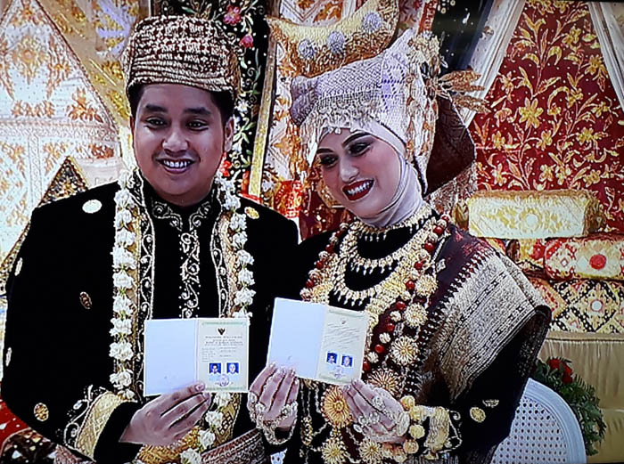 Di hadapan penghulu, pasangan pengantin, saksi nikah dan penghulu menandatangani berita acara pernikahan. Kemudian sang penghulu menyerahkan buku nikah kepada kedua pengantin.