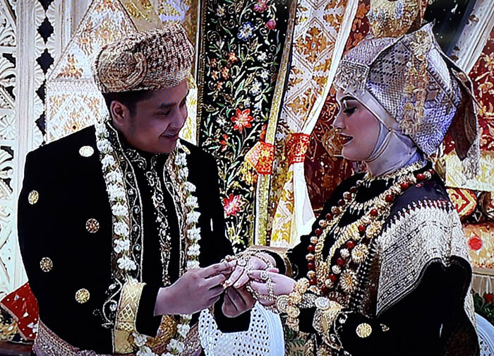 Acara belum berakhir sampai di situ. Pengantin pria menyerahkan mahar pernikahan kepada pengantin perempuan dan dilanjutkan pemasangan cincin oleh Bernando kepada Alika.