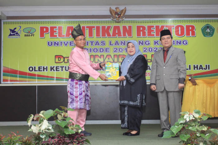 Penetapan Dr Junaidi sebagai Rektor menggantikan Rektor Unilak Periode 2015-2019 Dr Hj Hasnati berdasarkan Surat Keputusan No. 312/Yasrah.BI/XI/2019.
