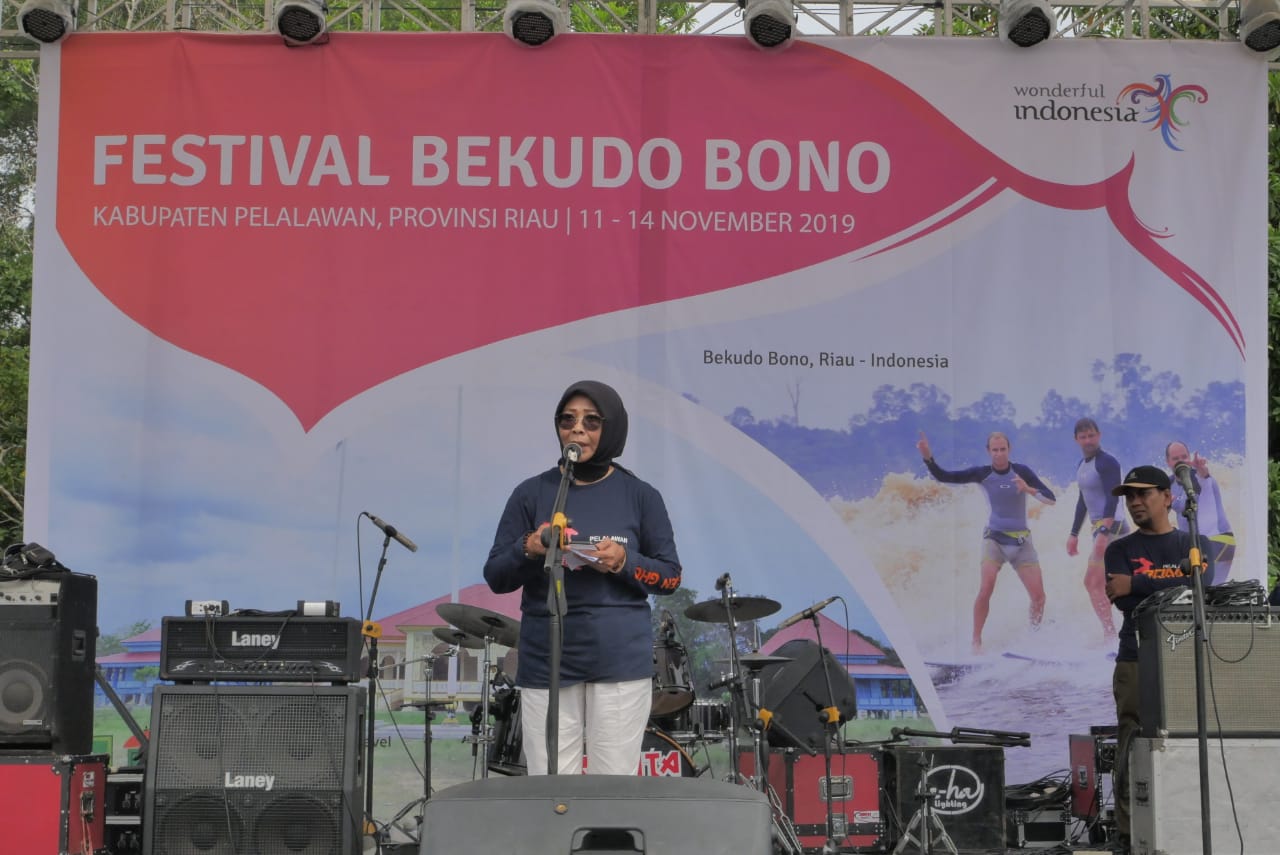 Festival tahunan Bono Surfing 2019 tersebut dibuka langsung oleh Bupati Pelalawan HM Harris pada Senin (11/11/2019) malam. Tampak hadir dalam pembukaan tersebut Kepala Calender Of Event (COE) Wonderful Nusantara dan Ekonomi Kreatif Kementerian Pariwisata (Kemenparekraf) dan Ekonomi Kreatif Republik Indonesia Hesty Reko Astuti, Wakapolres Pelalawan, pejabat di Kementerian Pariwisata dan Ekonomi Kreatif Republik Indonesia, para Kepala OPD, peselancar, tokoh pemuda, tokoh masyarakat, tokoh agama, turut hadir memeriahkan pembukaan acara.