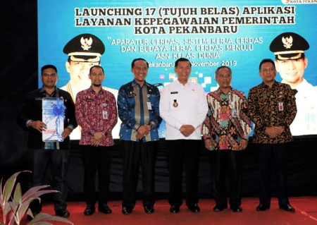 Wako dan sejumlah pejabat lainnya pada launching 17 Aplikasi Layanan Kepegawaian Pemko Pekanbaru