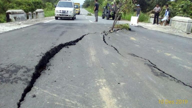 "Kalau badan jalan ini putus tidak ada jalan lain karena jalan ini adalah jalan penghubung dua kecamatan serta akses jalan menuju ke kabupaten, maupun provinsi," jelas Budi.