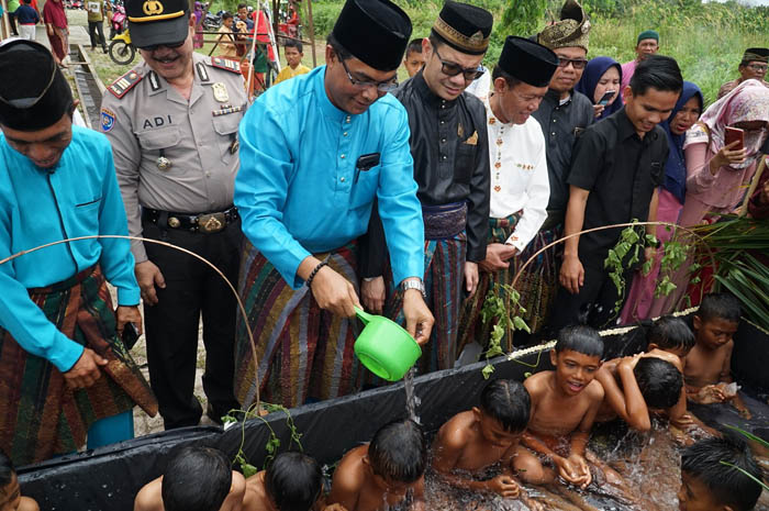 “Karena kita berada di bumi melayu, kita punya suatu keharusan untuk melestarikan dan menanamkan nilai adat budaya serta bersamaan dengan agama Islam. Di antara kegiatan sunatan massal yang dibalut adat melayu yakni mulai dari barjanzi atau berdoa, tepung tawar, mandi berendam, dan berjulang atau mengangkat anak di pundak,” tuturnya, Selasa (24/12/2019).