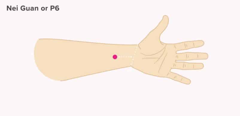 Titik PC6/P6 terletak di tengah-tengah pergelangan tangan bagian dalam. Melansir salah satu penelitian dalam jurnal PLoS One, tekanan pada titik PC6/P6 diketahui dapat meredakan keluhan mual dan muntah pascaoperasi.