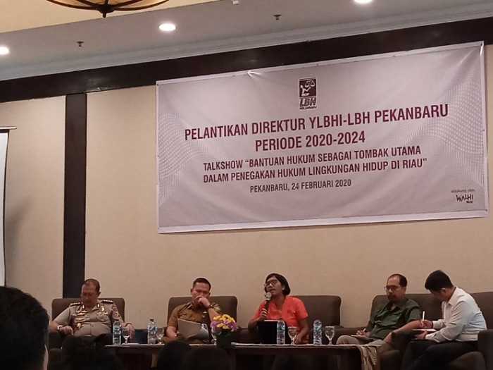 Hal itu dia sampaikan saat jadi pembicara talkshow bertajuk "Bantuan Hukum sebagai Tombak Utama Dalam Penegakan Hukum Lingkungan Hidup di Riau" yang ditaja LBH Pekanbaru sempena pelantikan direktur baru, Senin (24/2/2020) di sebuah hotel di Pekanbaru.