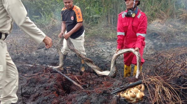 Potret Ular Piton Mati Terbakar Lindungi Telur dan Anaknya dari Kebakaran Lahan di Riau