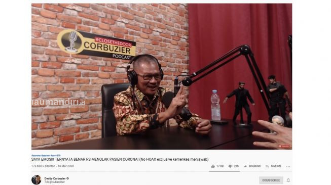 RIAUMANDIRI.ID, JAKARTA – Artis Deddy Corbuzier penasaran dengan pengakuan seorang perempuan yang berstatus pasien dalam pengawasan (PDP) virus corona Covid-19 dilepaskan begitu saja oleh rumah sakit.