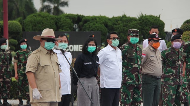 Menteri Pertahanan Prabowo Subianto (kiri) saat menerima.kedatangan tim penjemput alkes dari China. Foto: Dok. Humas Kemhan