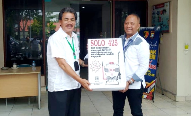 Penyerahan 100 set alat semprot disinfektan ini diserahkan langsung oleh Ketua APHI Komda Riau Muller Tampubolon beserta jajaran pengurus APHI lainnya bertempat di Gedung Krimsus Polda Riau, Jalan Gajah Mada Pekanbaru.