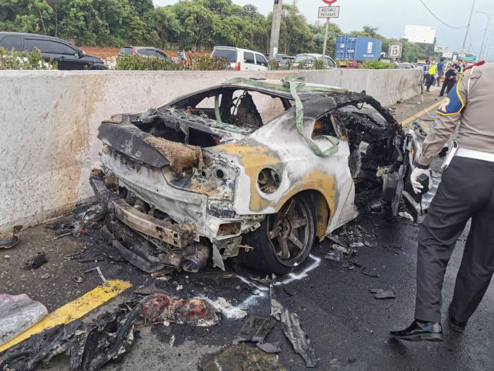 "Kendaraan (Arminsyah) datang dari arah selatan, mengarah Jakarta, diduga berjalan di lajur 4. Lalu menabrak pembatas media tengah, dan kendaraan terbakar," kata Yusri.