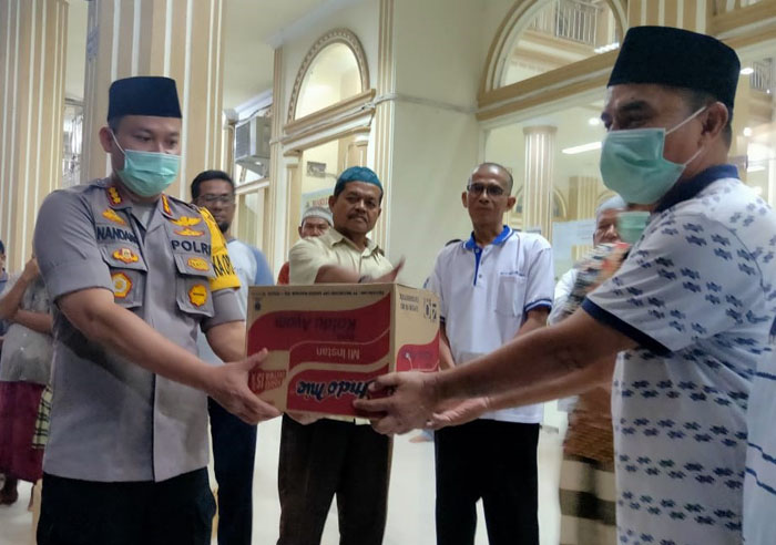 "Kita salurkan bantuan sembako bagi masyarakat yang terdampak Covid-19 ini melalui pengurus masjid. Walaupun tidak begitu banyak, kita berharap ini dapat sedikit meringankan beban masayarakat yang membutuhkan," kata Kapolresta Pekanbaru, Nandang Mu'min Wijaya melalui Humas Budhia, Selasa (7/4/2020) pagi.