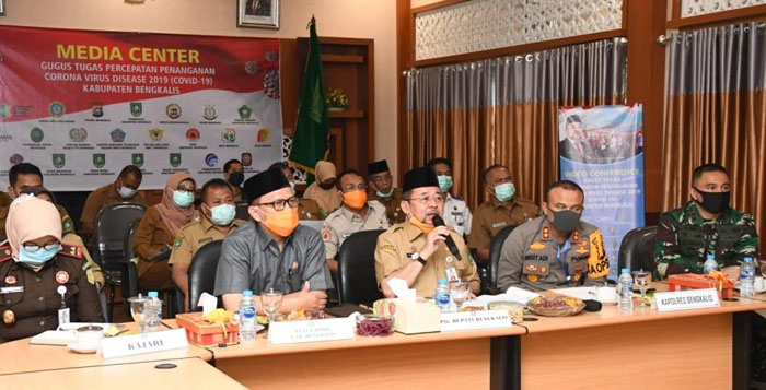 Ikut dalam video telekonferensi bersama Gubri tersebut Ketua DPRD Khairul Umam, Kajari Nanik Kushartanti, Kapolres Sigit Adi, Dandim 0303/Bengkalis Lizardo Gumay, Asisten Pemerintahan Umum dan Kesejahteraan Rakyat Hj. Umi Kalsum, Asisten Bidang Ekonomi dan Pembangunan Heri Indra Putra, Kepala Dinas Pemberdayaan Masyarakat Desa Yuhelmi, Kepala Badan Penanggulangan Bencana Daerah Tajul Mudarris, Kepala Dinas Sosial Martini, Kepala Dinas Perhubungan Djoko Edy Imhar, Kepala Bagian Protokol dan Komunikasi Pimpinan Muhammad Fadhli, Kepala Bagian Hukum Maryansyah Oemar.