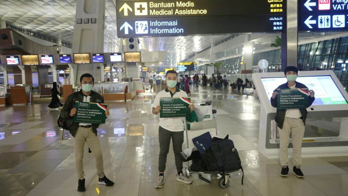 Ketiga relawan muda tersebut terbang selama enam jam dari Bandara Internasional Soekarno Hatta menuju Pudong International Airport di Shanghai. Dengan menggunakan pesawat Garuda Indonesia Boeing 777-300 ER yang disewa Tanoto Foundation, mereka membawa misi khusus untuk menjemput bantuan Alat Pelindung Diri (APD) bagi tenaga kesehatan di Indonesia. Bantuan tersebut berupa 1 juta masker, 1 juta sarung tangan, 100 ribu baju pelindung dan 3 ribu kacamata pelindung.