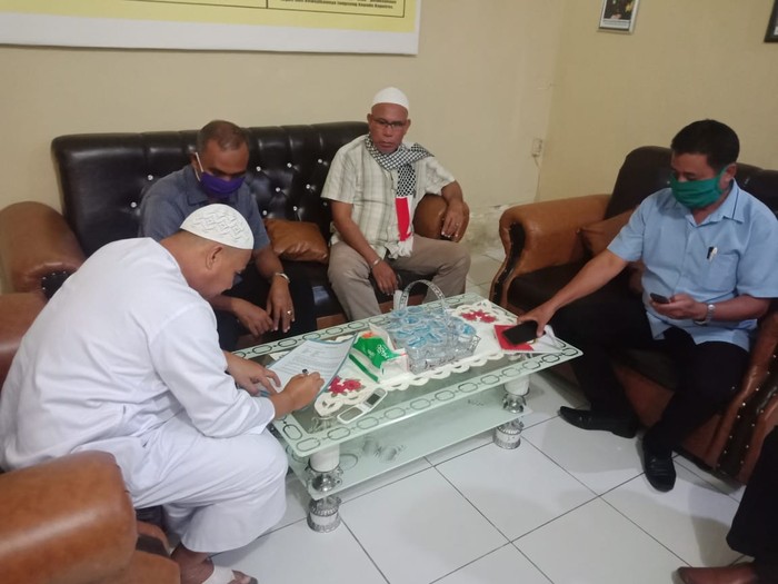 "Sudah dua kali pertemuan di Polsek Batang Kuis sampai hari ini dan Ketua FPI Batang Kuis juga sudah membuat permohonan maaf secara tertulis dan tidak akan mengulangi perbuatannya," kata Kapolresta Deli Serdang Kombes Yemi Mandagi, Rabu (29/4).
