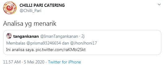 Tak disangka, hasil analisa warganet itu ditanggapi oleh Gibran. Melalui akun Twitter miliknya @chillipari, ia memberikan tanggapan singkat.