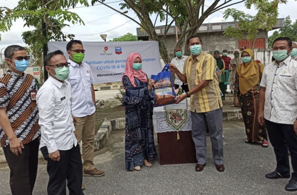 Vice President Sumatra Operations PT CPI Nurhasan memberikan bantuan ke Gugus Tugas Covid-19 Kabupaten Bengkalis.