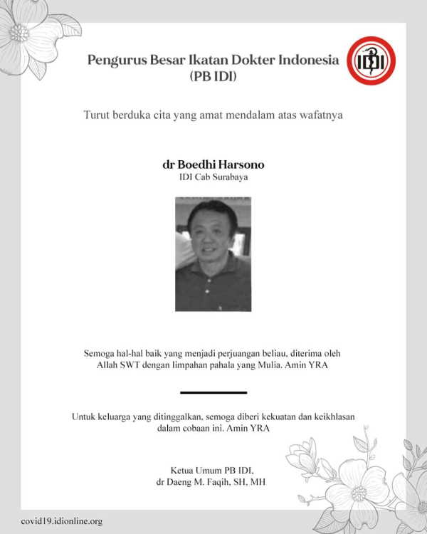 Halik menjelaskan, sebelum meninggal dr Boedhi telah menjalani perawatan. Hasil tes menunjukkan Boedhi positif Covid-19.