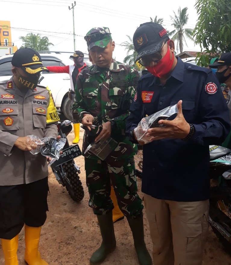 RIAUMANDIRI.ID, ROKAN HILIR – Bupati Rokan Hilir (Rohil) H Suyatno menyerahkan bantuan sembako dan masker kepada warga yang tertimpa musibah banjir di Kepenghuluan Jumrah, Kecamatan Rimba Melintang, Kamis (21/5/2020).