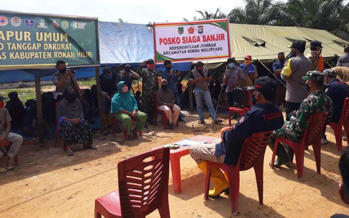 Sebanyak 105 paket sembako diserahkan oleh Bupati Rohil H. Suyatno kepada warga korban banjir di Dusun Suka Makmur, Kepenghuluan Jumrah, Kecamatan Rimba Melintang.
