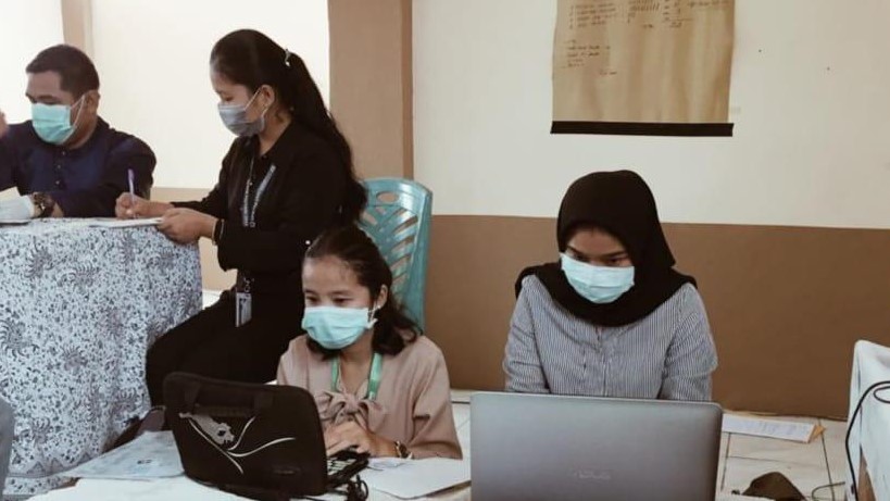 Mahasiswa Kukerta Relawan Desa Lawan Covid-19 Unri Bantu Penyaluran BLT-Sembako di Air Jamban