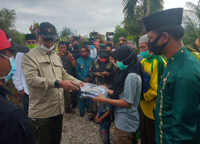 RIAUMANDIRI.ID, ROHIL - Bupati Rokan Hilir H Suyatno, Jumat (29/5/2020), menyerahkan bantuan langsung kepada keluarga Ahmad Yani, warga Sei Bakau yang rumahnya mengalami musibah kebakaran beberapa waktu lalu, tepatnya pada lebaran kedua.