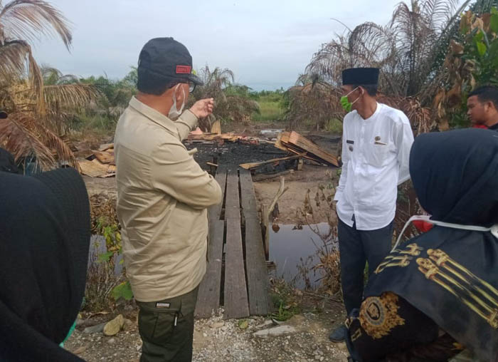 Dengan berboncengan naik sepeda motor, orang nomor satu di Rohil ini menuju lokasi musibah kebakaran yang berada di tengah-tengah perkebunan sawit.