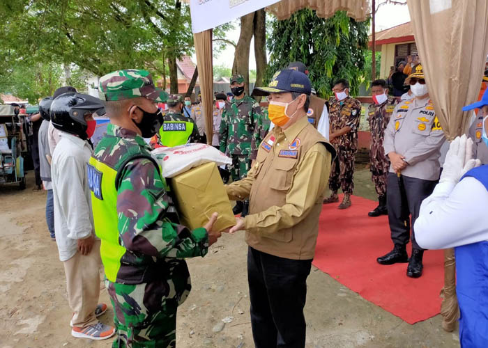 Rangkaian kegiatan dimulai beberapa saat setelah mendarat. Gubri langsung menyerahkan bantuan sosial sekitar 500 paket kepada warga masyarakat terdampak Corona.