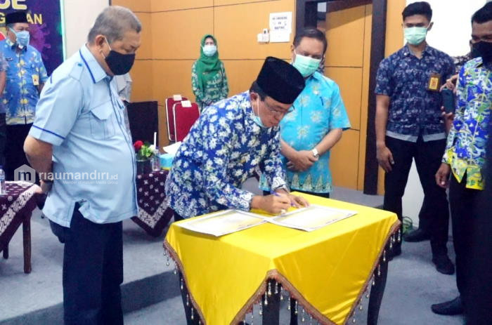 RIAUMANDIRI.ID, TEMBILAHAN - Bupati Kabupaten Indragiri Hilir (Inhil), HM Wardan meresmikan tiga dermaga di Kecamatan Reteh dan dua Balai Latihan Kerja Komunitas (BLKK) di Kecamatan Pelangiran. Peresmian dilaksanakan melalui video conference, Kamis (4/6/2020).