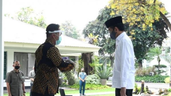 Presiden Jokowi dicek suhu tubuh sebelum memasuki masjid